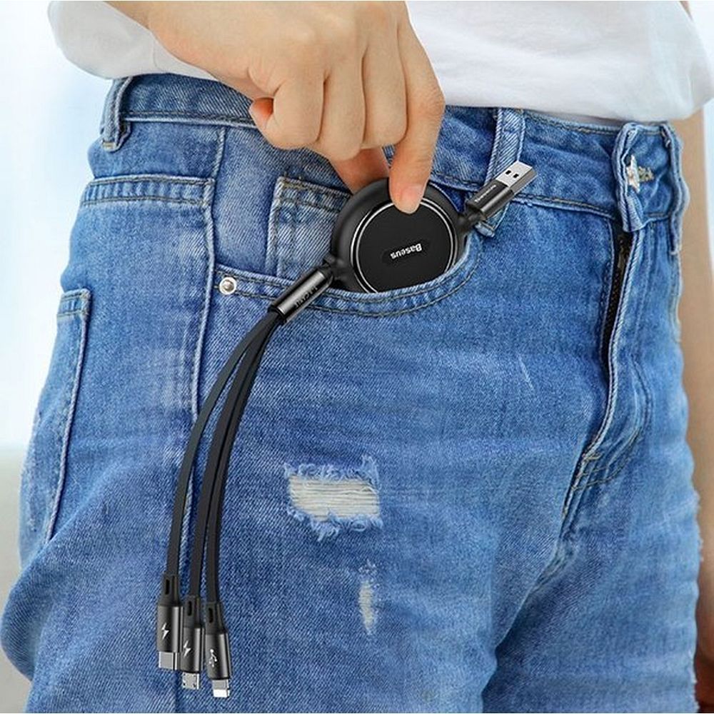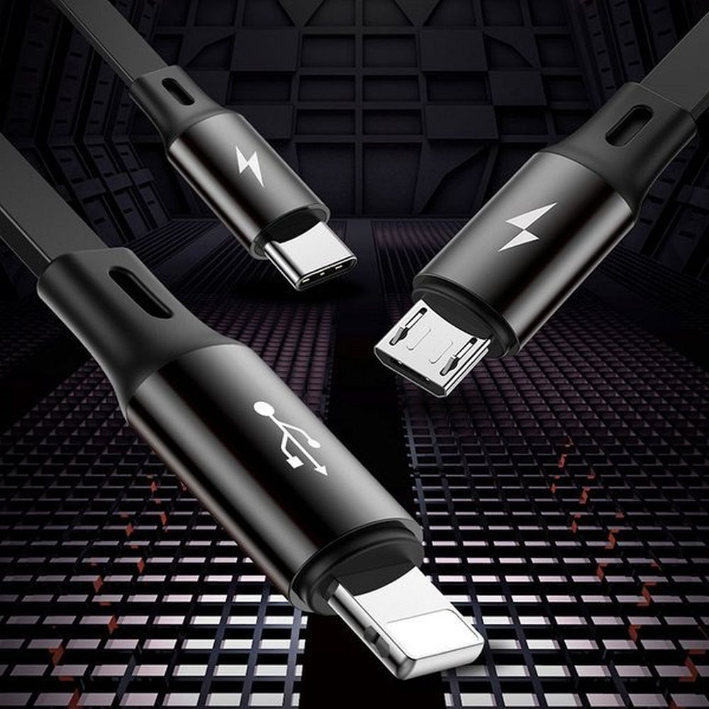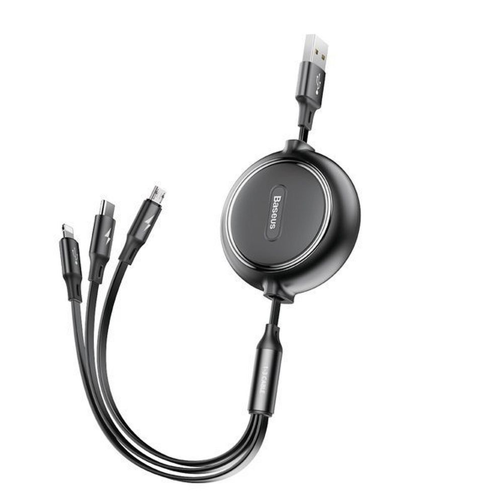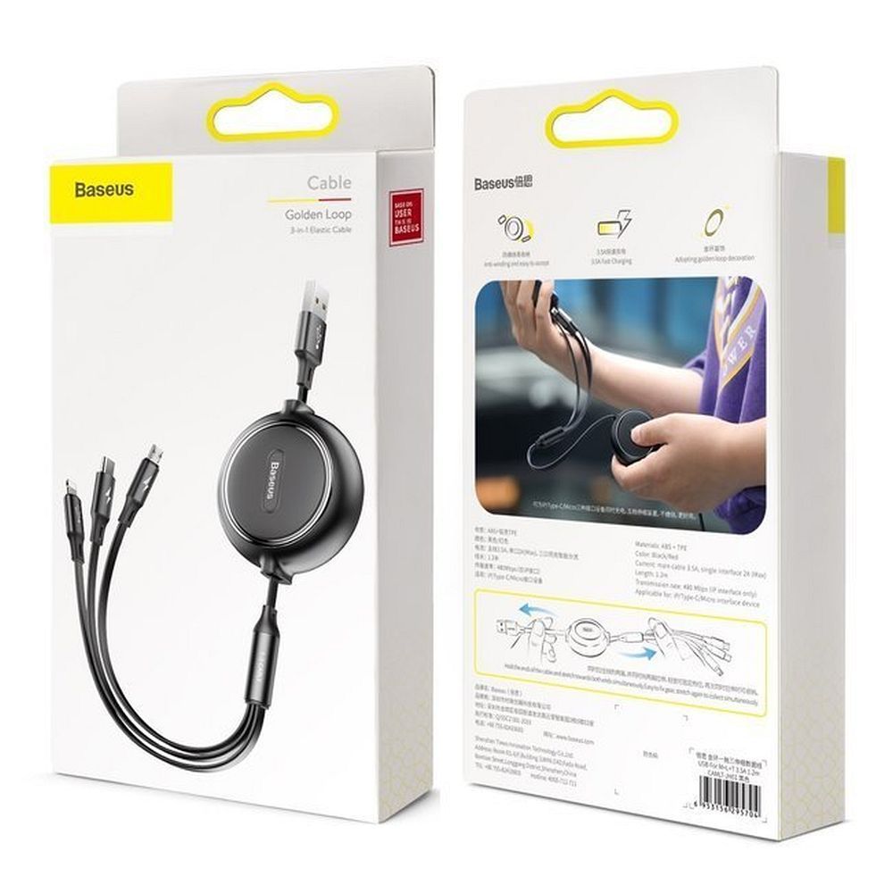 Specyfikacja: Marka: Baseus Nazwa: Baseus Golden Loop Wtyczki: USB / USB-C / micro USB / Lightning Materiał: aluminium + TPE Natężenie: 3.5A (max) Długość: 35cm – 120cm Waga: 41 gramów Funkcje: ładowanie / przesył danych (tylko Lightning) Kompatybilność: urządzenia z portami USB-C / micro USB / Lightning