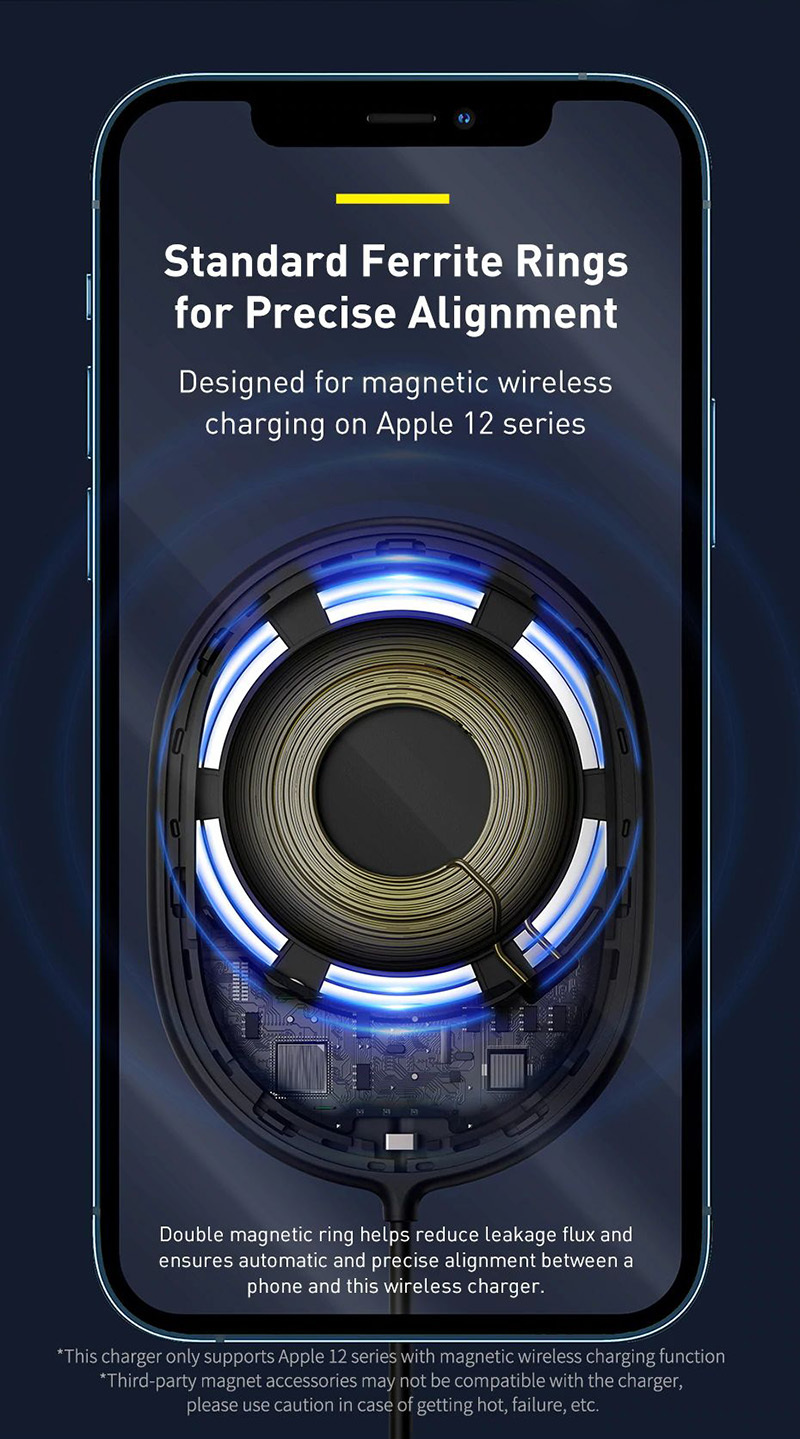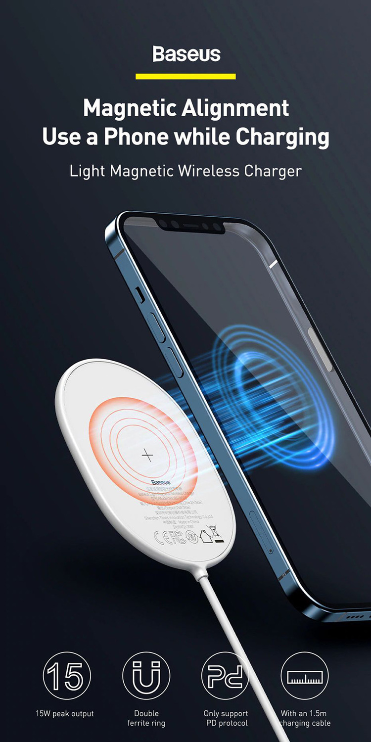 Baseus Ładowarka Indukcyjna LIGHT Magnetyczna Iphone 12 z kablem Typ C (WXQJ-02) Biała
