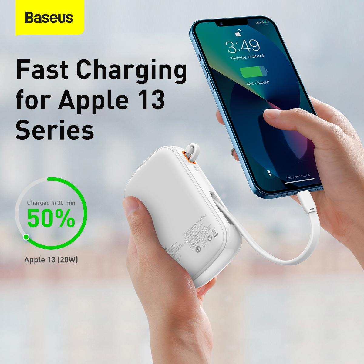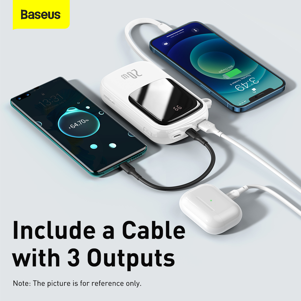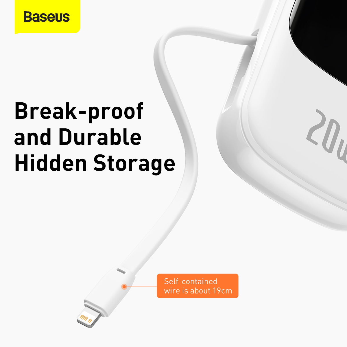 Baseus Power Bank 20000mAh Qpow Pro – USB + Typ C – PD 20W z kablem Lightning (PPQD060202) biały