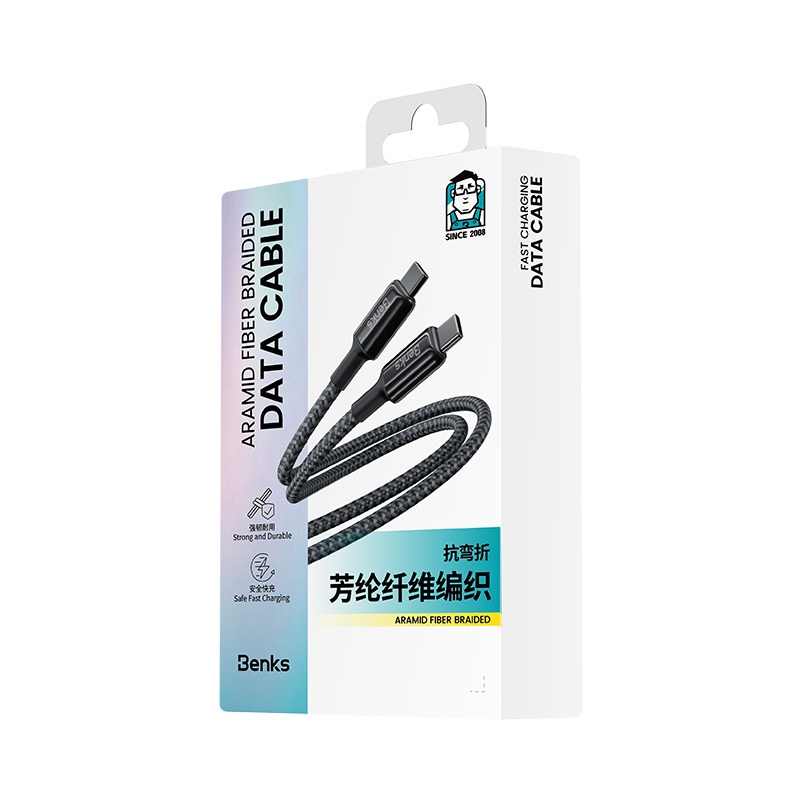 Benks Kabel D49 pleciony – Typ C na Typ C – PD 60W 3A 1,2 metra czarny