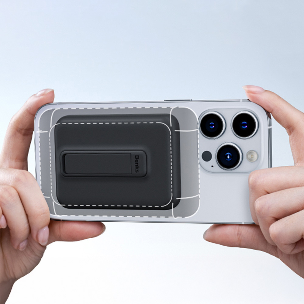 Zbudowany z wielu silnych magnesów, które stabilnie łączą akumulator z iPhonem