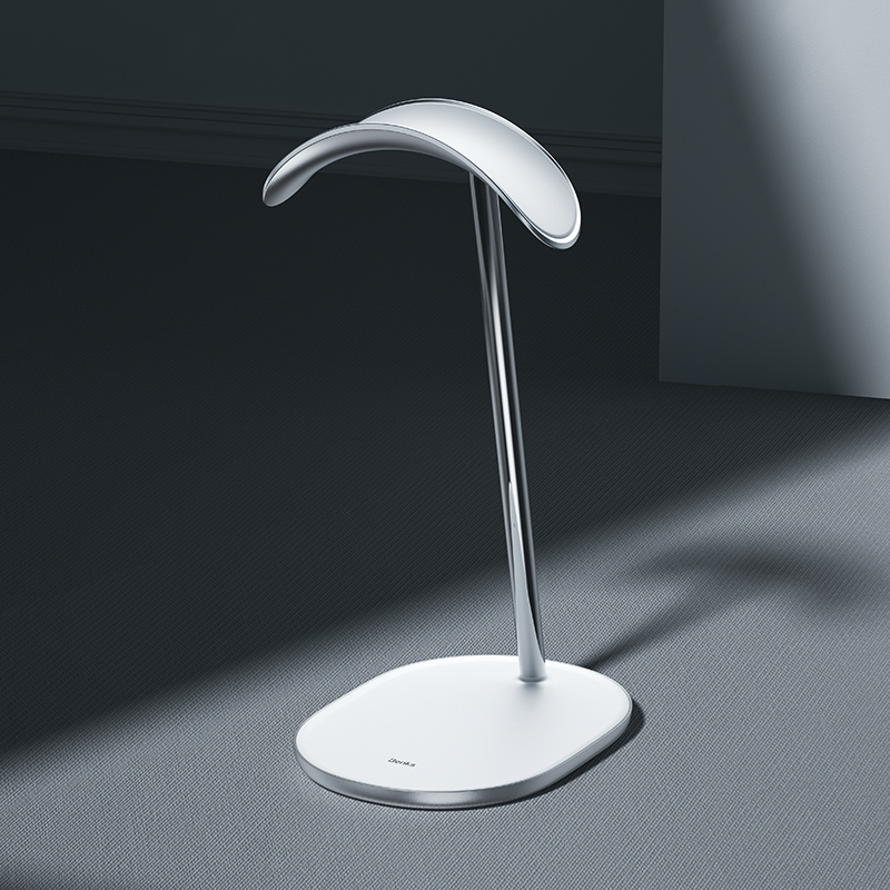 Elegancki i stabilny stojak biurkowy przeznaczony do słuchawek nausznych. Wyposażony w silikonowe powierzchnie ochronne, solidny trzpień ze stali nierdzewnej oraz antypoślizgową podstawę.