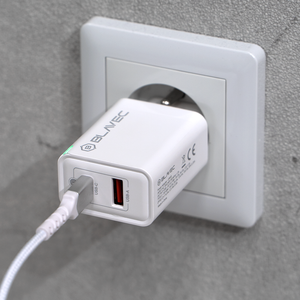 Blavec Ładowarka sieciowa BC-5 GaN – USB + Typ C – PD QC 45W 3A (TCBC5G-UCW453A) biała