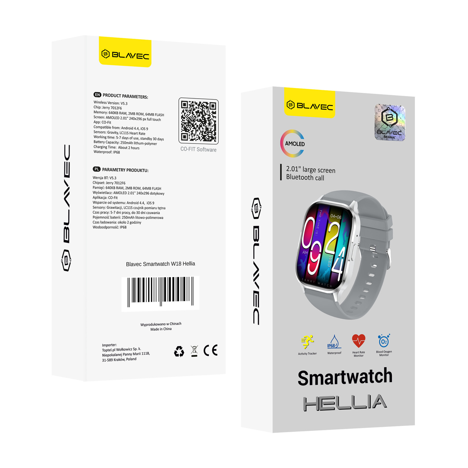 Blavec Smartwatch W18 Hellia HD AMOLED (SWW18-G) – Szary