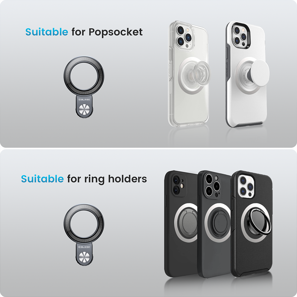 - Pasuje do smartfonów różnych marek – Kompatybilny zarówno z telefonami obsługującymi MagSafe, jak i urządzeniami bez MagSafe przy użyciu blaszki 3M.