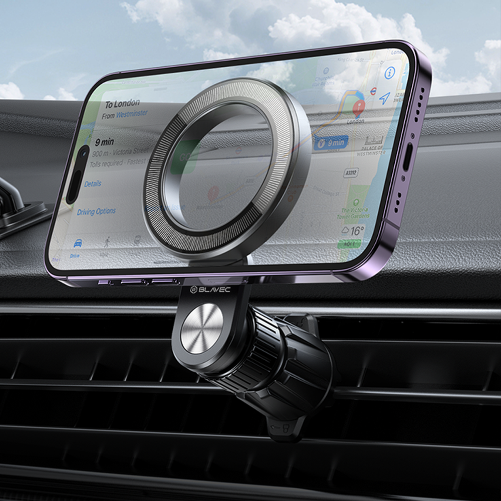 - Bardzo mocne magnesy – Zapewniają stabilne utrzymanie telefonu, nawet podczas jazdy po nierównym terenie.
