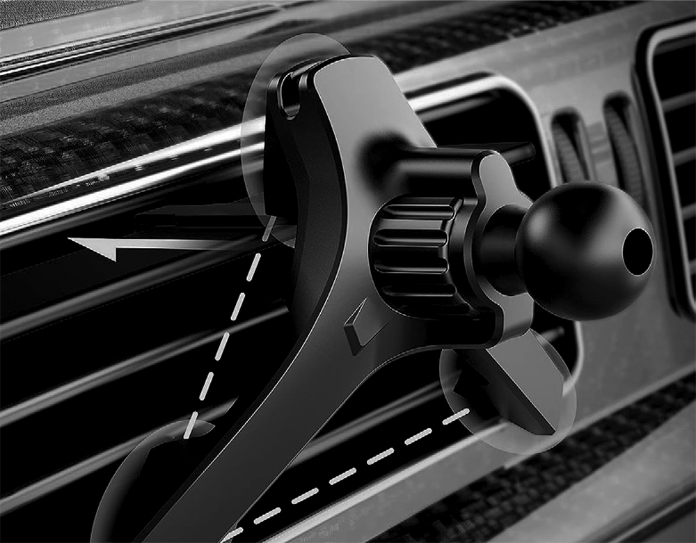 - Specjalnie zaprojektowany haczyk – Blokuje uchwyt w kratce nawiewu, zapewniając stabilność i brak luzów.