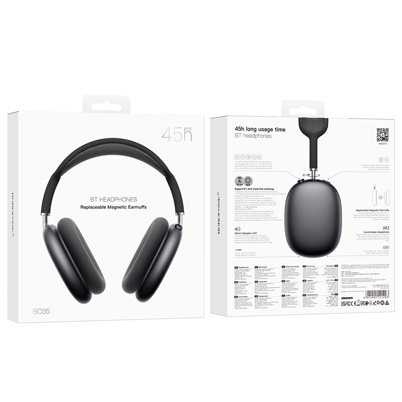 Borofone Słuchawki nauszne BO35 Adorable Bluetooth to stylowy i wszechstronny zestaw, który łączy długi czas pracy z wygodą użytkowania. Wyposażone w Bluetooth 5.4 i chip JL7006F4, oferują stabilne połączenie oraz intuicyjne powiadomienia głosowe w języku polskim i angielskim.