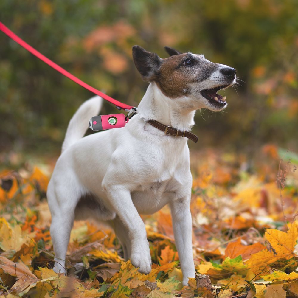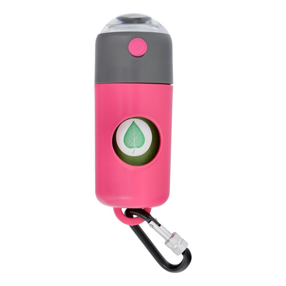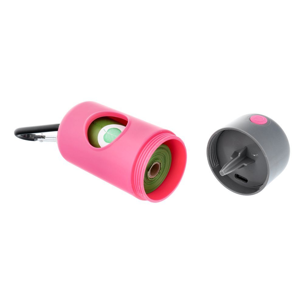 Dozownik worków na psie odchody z karabińczykiem i latarką LLFG24033 pink