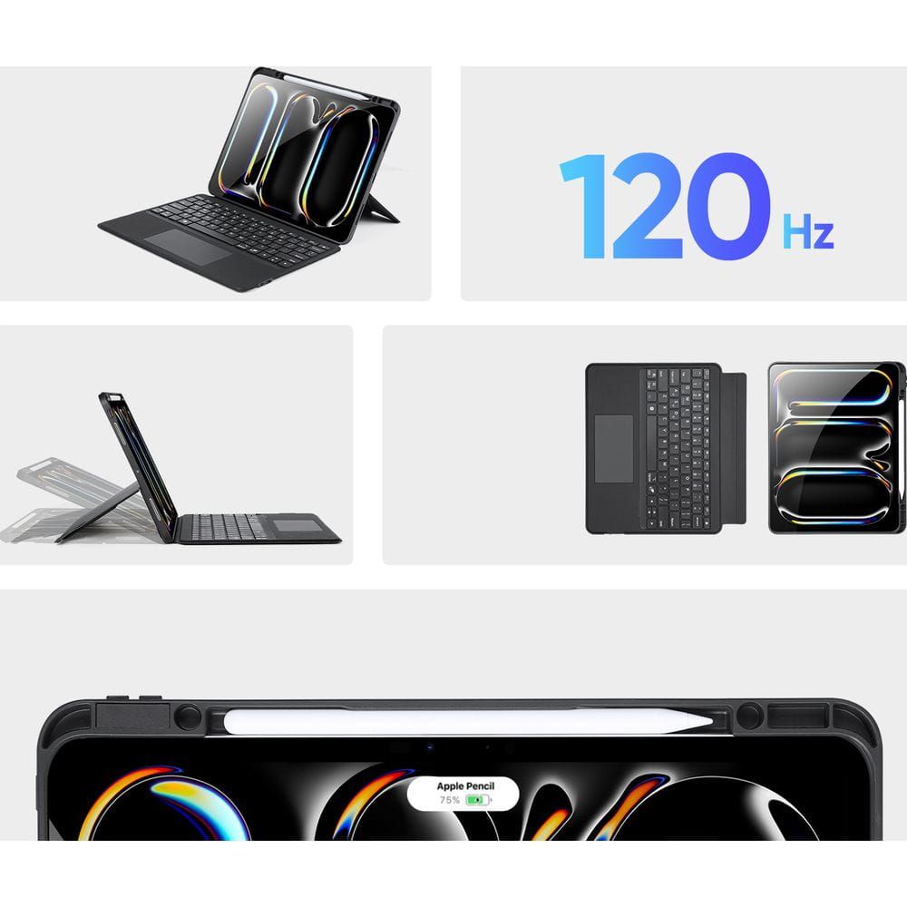 Etui z klawiaturą Bluetooth Dux Ducis DK łączy elegancję z funkcjonalnością, zaprojektowane dla tabletów. Posiada miejsce na rysik, Zbudowane z trwałego materiału PU i elastycznego TPU, oferuje wygodę i ochronę.