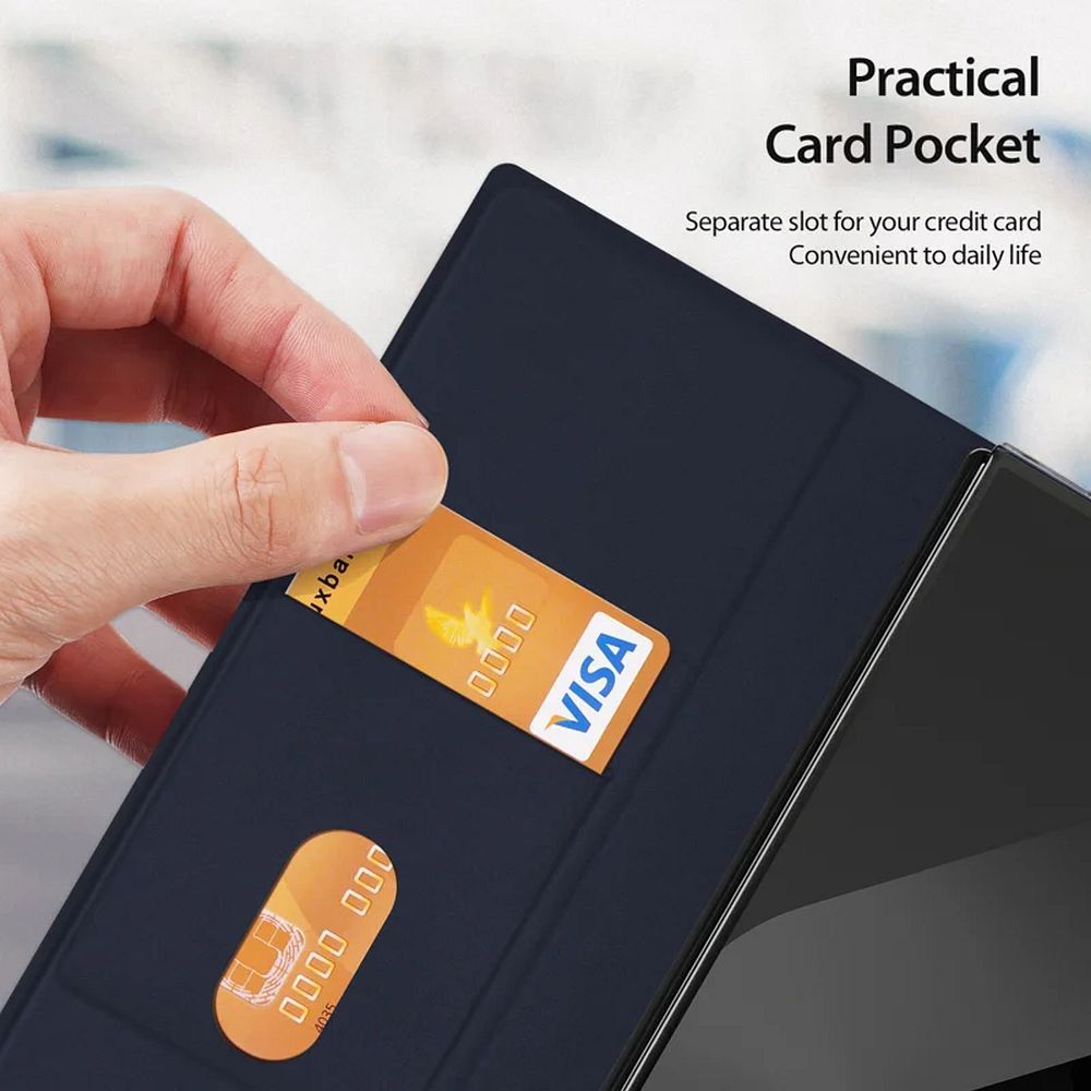 Etui Dux Ducis Bril to doskonałe połączenie elegancji i praktyczności. Wykonane z ekologicznej skóry, charakteryzuje się stylowym wyglądem i funkcjonalnością. Magnetyczne zamknięcie, składana podstawka, zamknięta konstrukcja, kieszonka na karty kredytowe lub dokumenty i dokładne wycięcia to cechy, które sprawiają, że to etui jest idealne do codziennego użytku. Dodatkowo, specjalna warstwa zabezpiecza przed odciskami palców, zapewniając nieskazitelny wygląd.