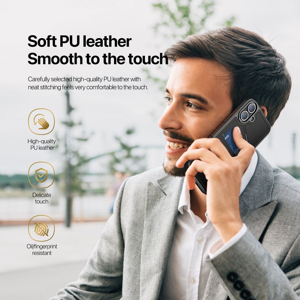 Wykonany z twardej płyty PC i miękkich krawędzi TPU, futerał ułatwia umieszczanie telefonu i chroni przed upadkami. Tył z gładkiej skóry PU zapewnia elegancję i komfort trzymania.