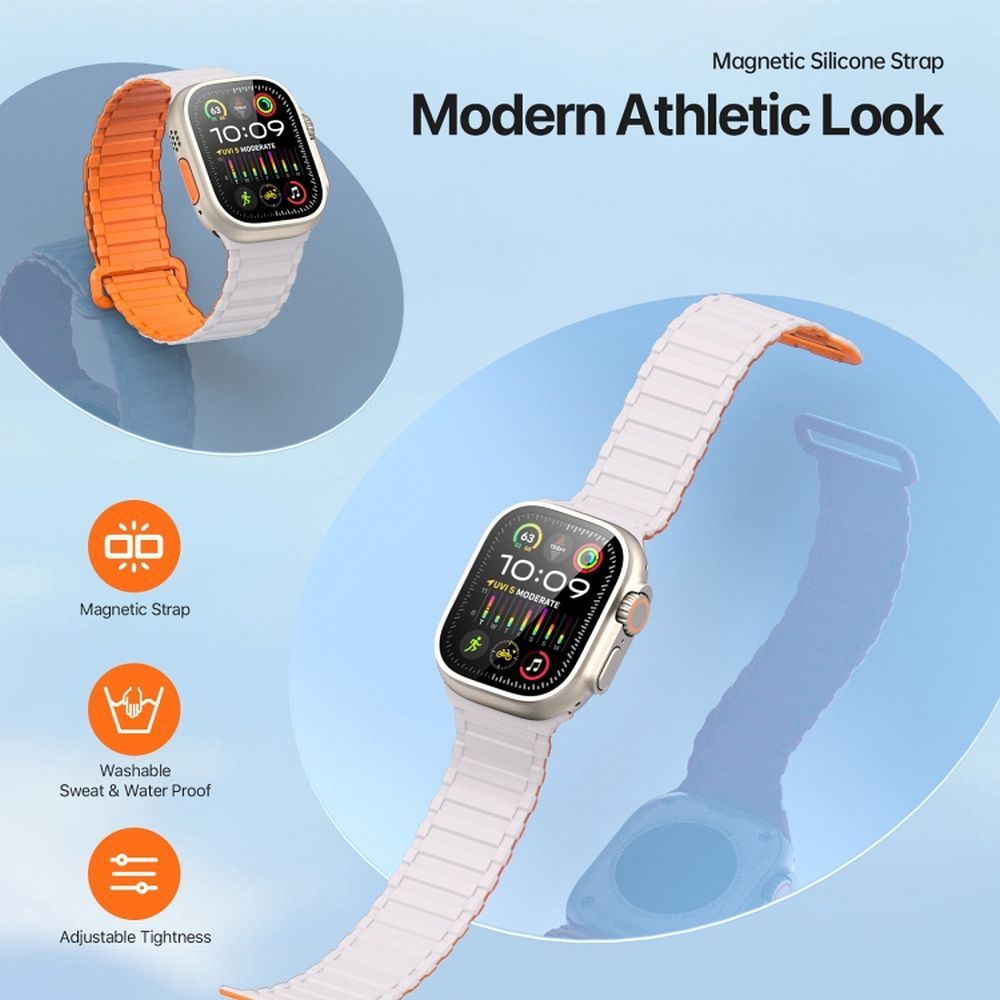 DUX DUCIS pasek KJ silikonowy do Apple Watch 42 / 44 / 45 / 49 mm srebrno pomarańczowy