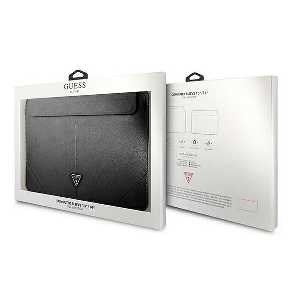 Stylowy pokrowiec typu sleeve zaprojektowany z myślą o 14-calowym notebooku/tablecie. Precyzyjne wzornictwo i stylowy wygląd to zalety produktów Guess. Markowy futerał z zapięciem typu magnetic na tablet wykonany jest z wysokiej jakości skóry ekologicznej Saffiano ozdobionej trójkątnym logo Guess. Kolekcja: Saffiano Triangle Typ: Sleeve Liczba komór: 1 Materiał: Skóra ekologiczna Kolor: Czarny Produkt wyprodukowany na licencji Guess.
