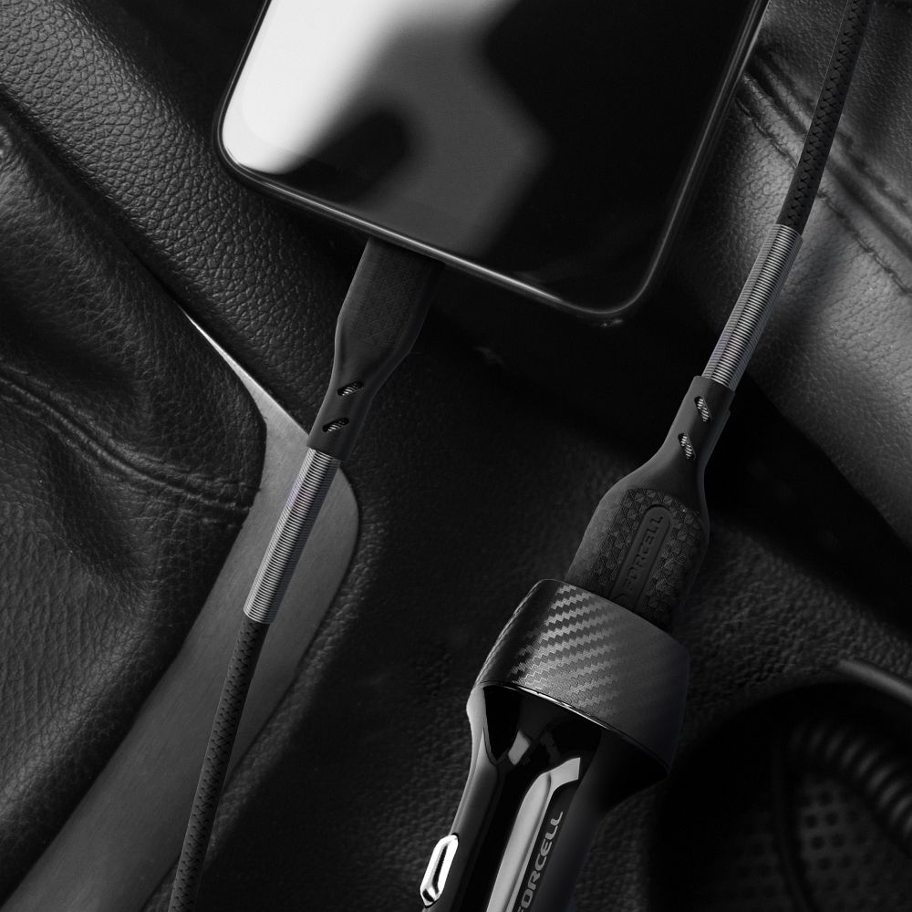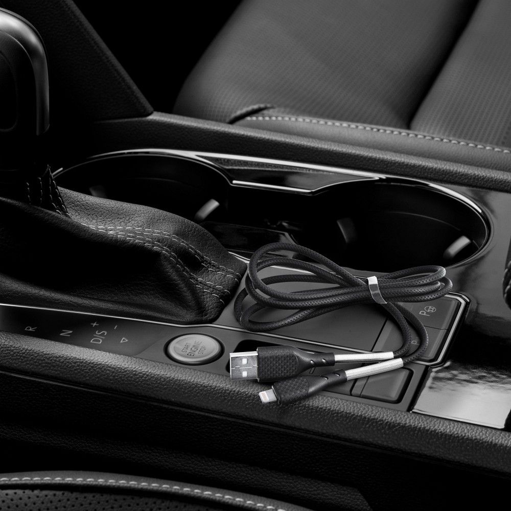 Zastosowany wzór włókna węglowego sprawia, że przewód zyskuje sportowy wygląd. Akcesorium doskonale komponuje się z wnętrzem każdego auta. Kabel jest nie tylko praktyczny, ale stanowi także ekskluzywny gadżet motoryzacyjny.