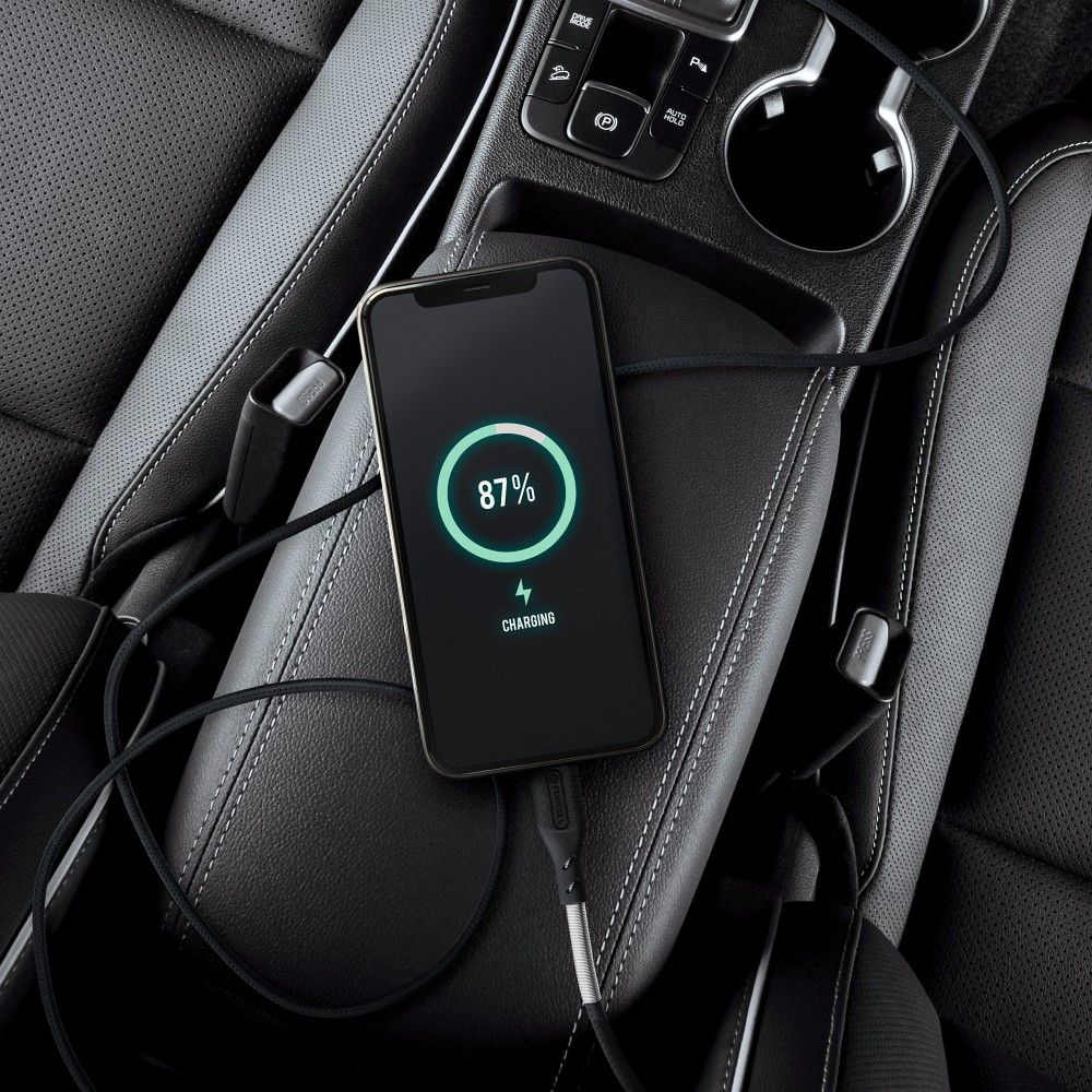 Kabel obsługuje system Apple CarPlay, umożliwiający korzystanie z funkcji smartfona bezpośrednio na ekranie samochodu. Po podłączeniu przez port USB możliwe jest wygodne uruchamianie nawigacji, odtwarzanie muzyki, przeglądanie kontaktów i wiadomości – bez potrzeby sięgania po telefon. Rozwiązanie zwiększa bezpieczeństwo i komfort jazdy.