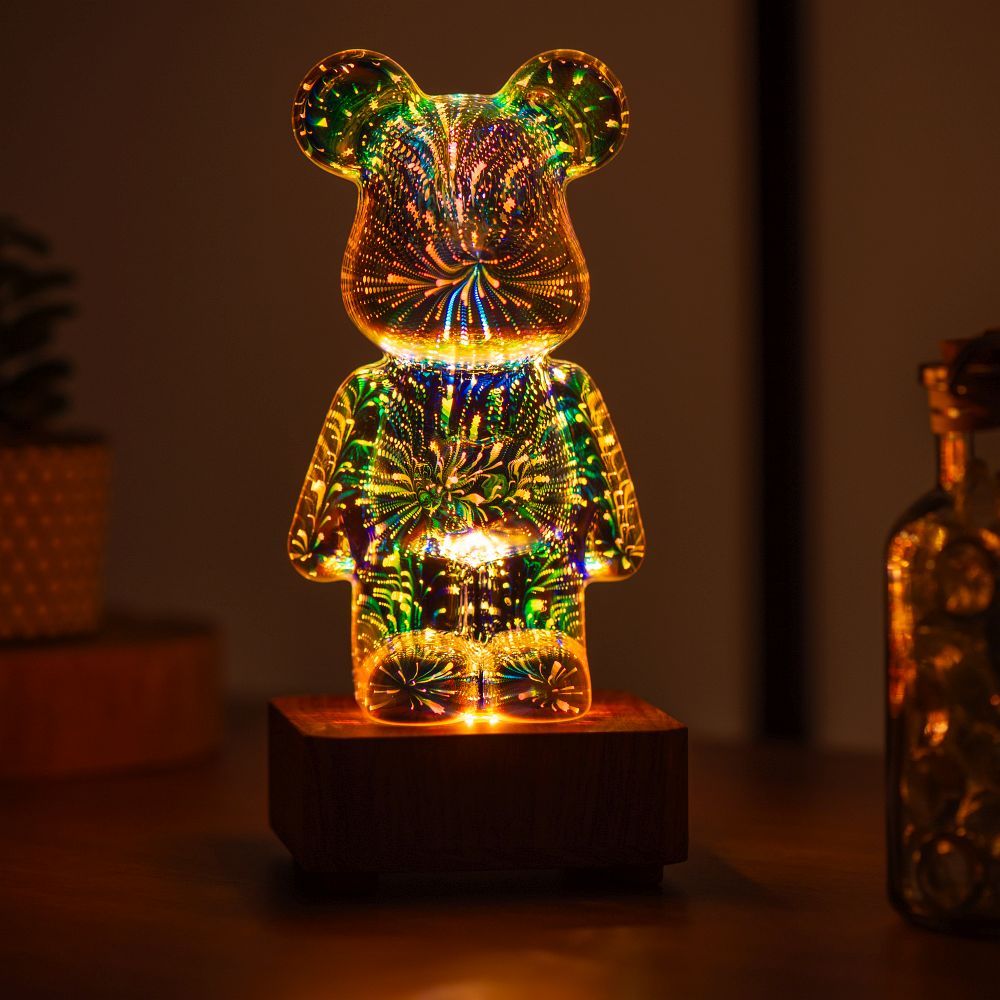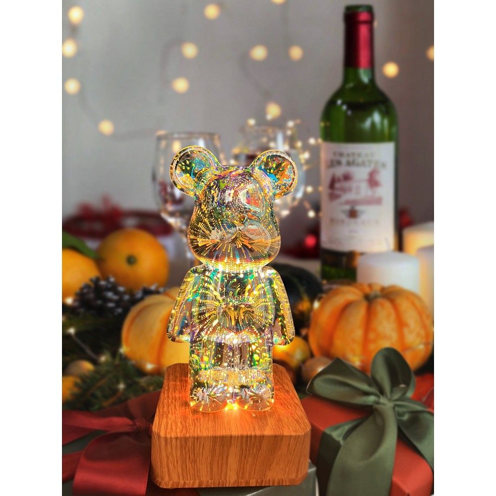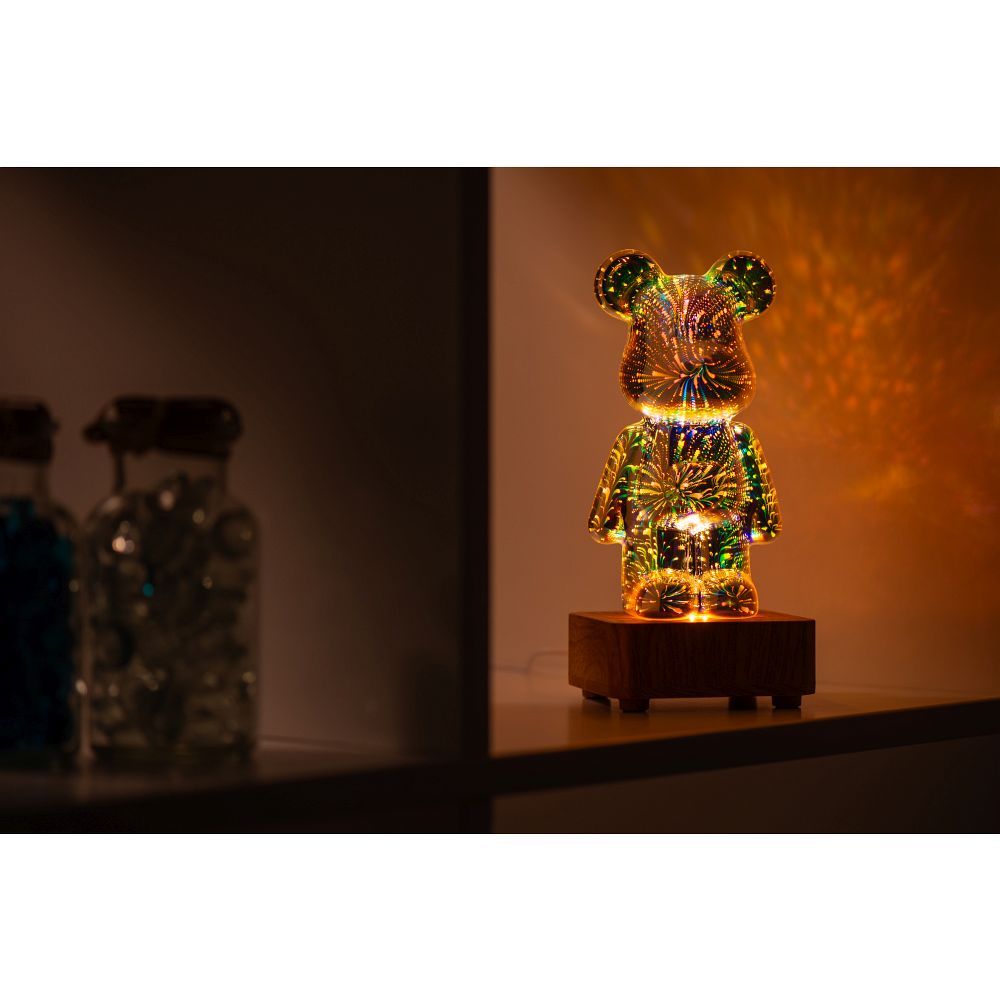 Lampka nocna LED 3D to niebanalny dodatek do każdego nowoczesnego wnętrza, który wprowadzi kolorowy nastrój i oryginalny styl. Jest to połączenie szklanej rzeźby misia z drewnianą bazą, które razem tworzą efektowny obiekt dekoracyjny z funkcjonalnym oświetleniem.
