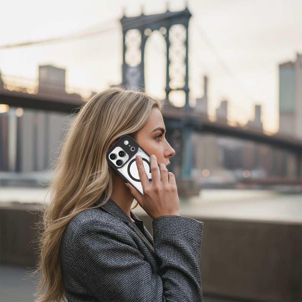 • Wzmocnione narożniki – strefy amortyzujące rozpraszają energię uderzenia, pomagając chronić telefon przy upadku.