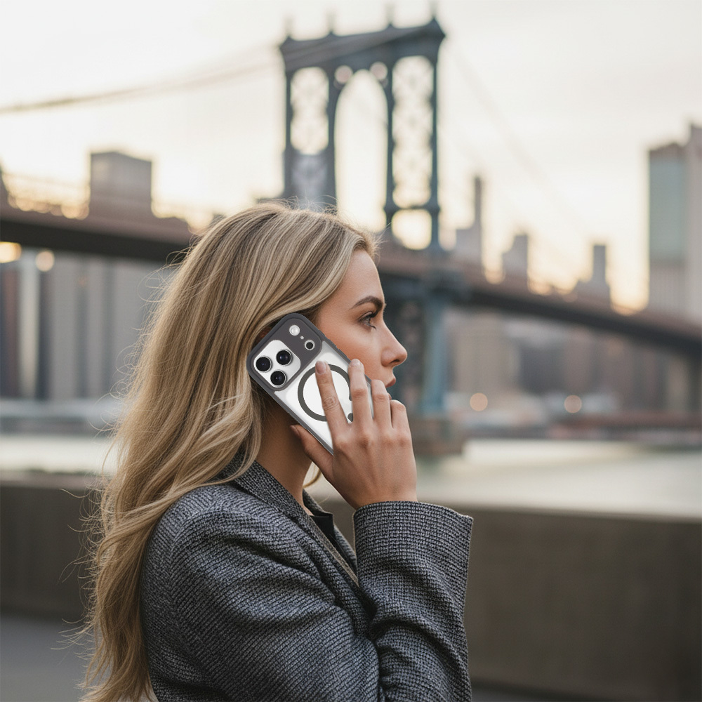 • Wzmocnione narożniki – strefy amortyzujące rozpraszają energię uderzenia, pomagając chronić telefon przy upadku.