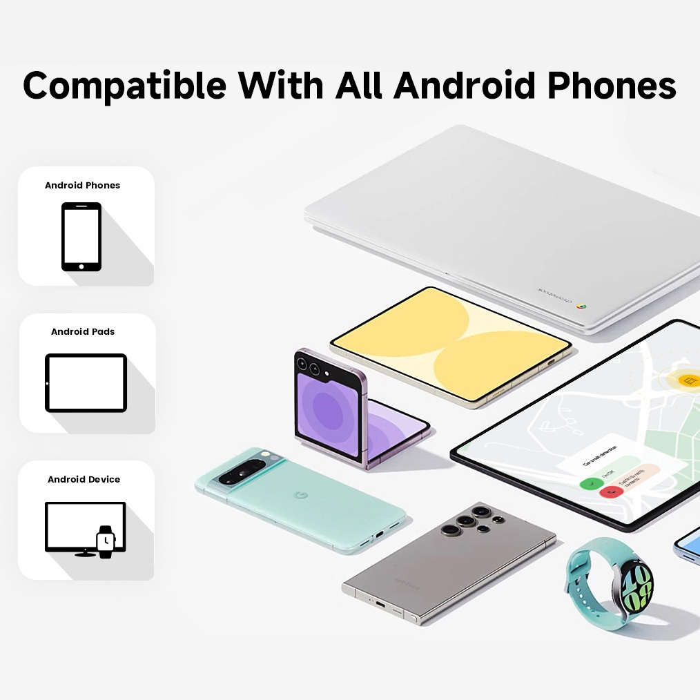 • Precyzyjne lokalizowanie – Wykorzystaj aplikację Android Find My Device, aby zlokalizować swoje przedmioty lub sprawdzić ich ostatnią znaną lokalizację poza zasięgiem.