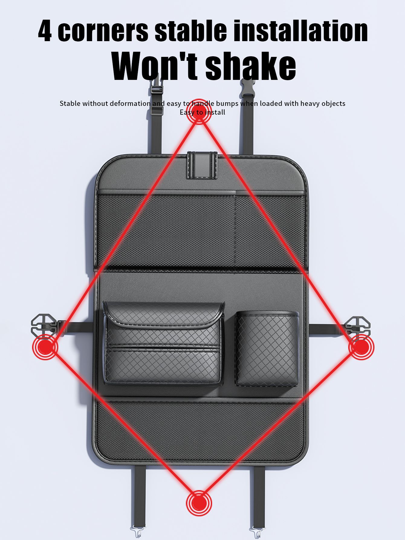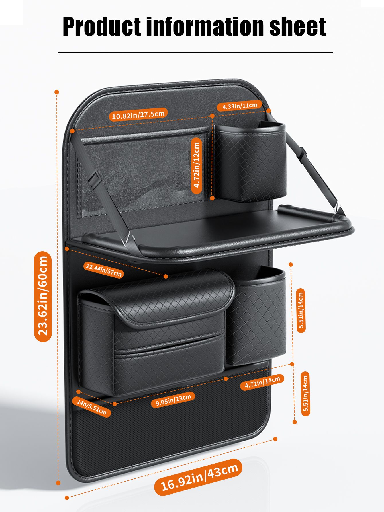 • Funkcjonalność: Organizer może pełnić funkcję stołu roboczego lub miejsca do przechowywania drobnych przedmiotów, idealny do używania w samochodzie w trakcie podróży.