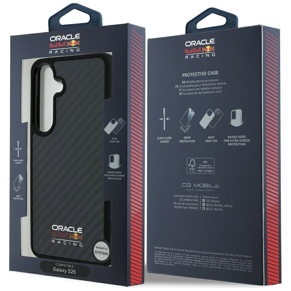 Oryginalne Etui RED BULL Real Carbon Fiber Shiny Logo MagSafe do Samsung Galaxy S25 czarny