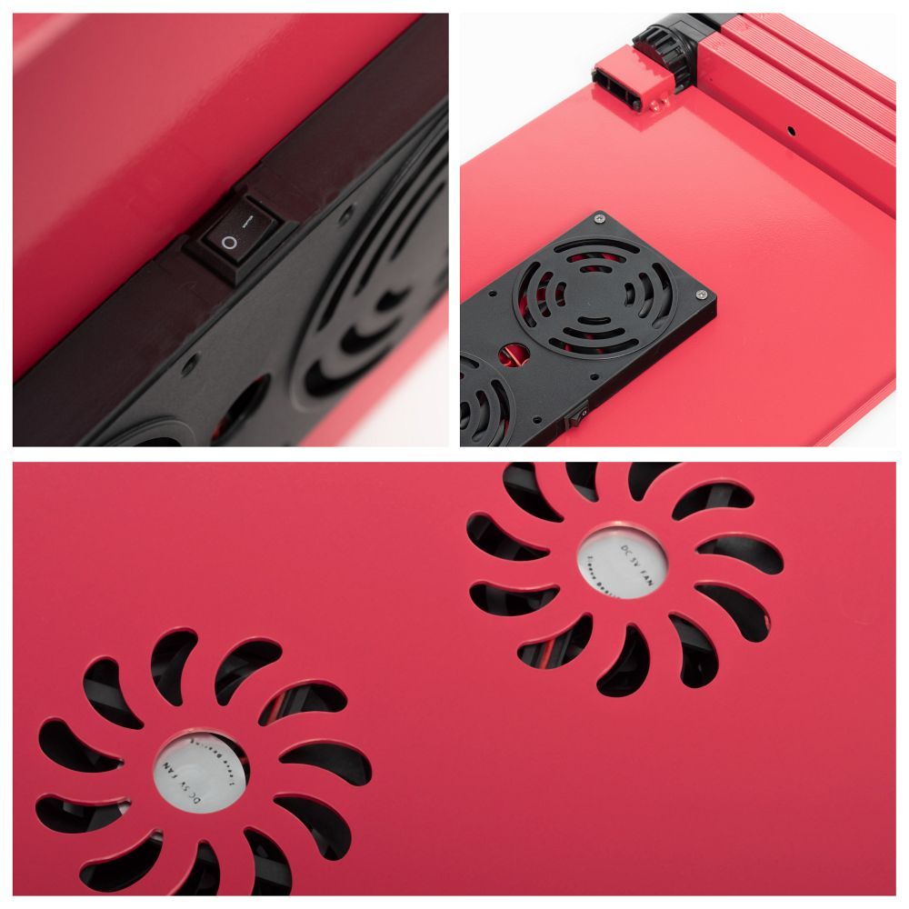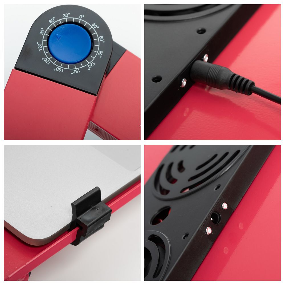 Praktyczny, rozkładany stolik do laptopa, ułatwiający codzienne korzystanie z komputera w pracy oraz w domu. Zapobiega przegrzaniu urządzenia. Wyposażony w boczną półkę na myszkę. Rozkładany stolik (podstawka) pod laptopa to niezwykle funkcjonalne akcesorium, które ułatwia korzystanie z komputera zarówno w pracy, jak i w domu, na kanapie czy w łóżku. Produkt został wyposażony w boczną półkę, na której używanie myszki będzie łatwiejsze. Wbudowane chłodzenie zapobiega przegrzaniu urządzenia, zapewniając bezpieczeństwo podczas pracy z laptopem. Dwie nóżki mają możliwość regulacji, dzięki czemu użytkownik może dostosować parametry produktu do własnych potrzeb. Dzięki użytym podczas produkcji materiałom (ABS, aluminium) stolik jest odporny na zarysowania i odbarwienia. Specyfikacja: Wejście: DC 5V/3 W. Materiał: aluminium + ABS Rozmiar: 420 * 260 mm Waga: 1,3 kg Max wysokość regulacji: 48 cm