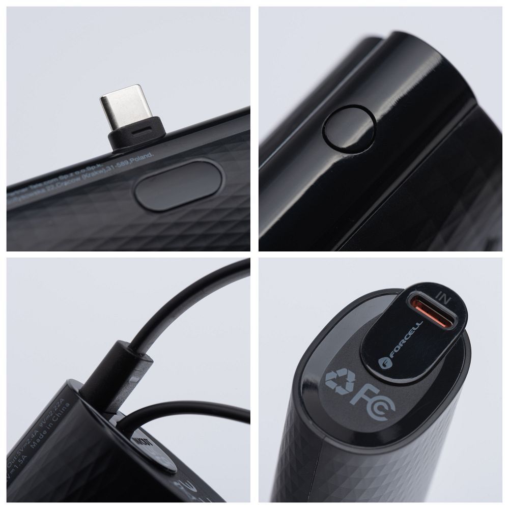 Powerbank Forcell F-Energy Power Plug F5K3 PD 20W 5000 mAh z wbudowanym złączem USB C czarny