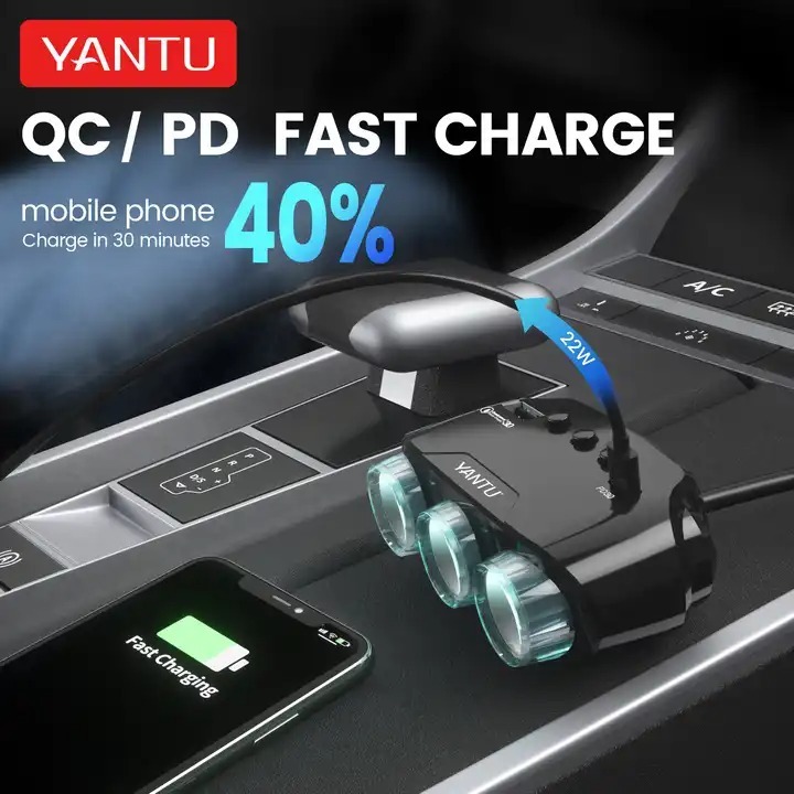 Rozdzielacz gniazda zapalniczki LM21 – 3 gniazda + USB + Typ C – QC 3.0 PD 3A 122W z wyświetlaczem i kablem