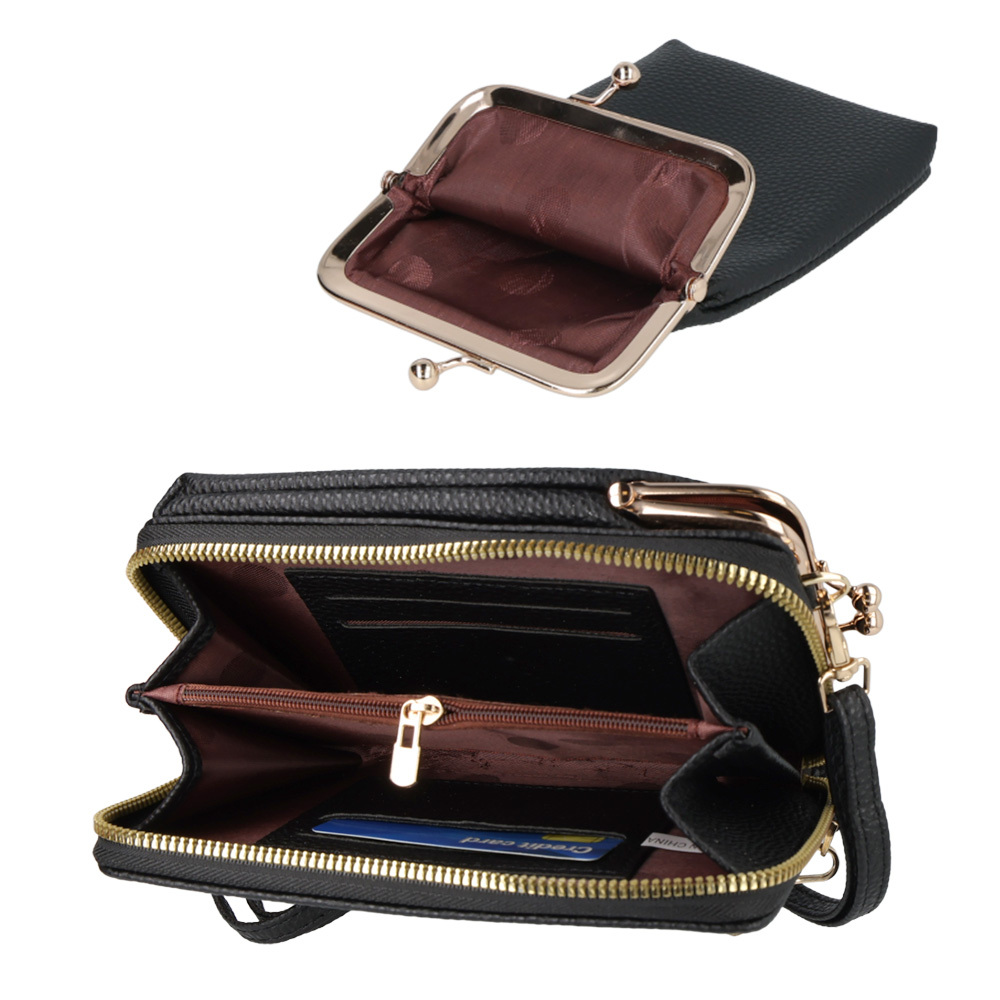 Praktyczna i elegancka torebka damska, która łączy w sobie funkcję portfela oraz etui na telefon. Model składa się z dwóch części: