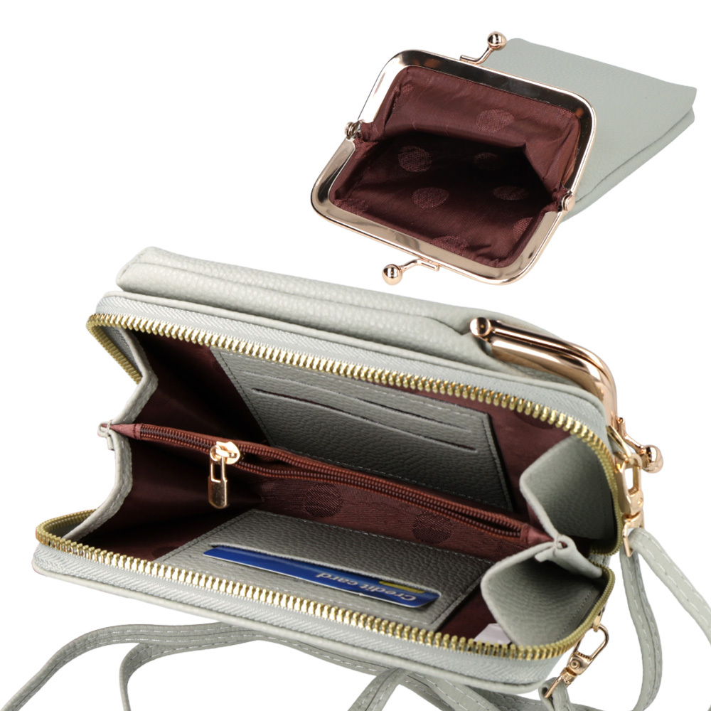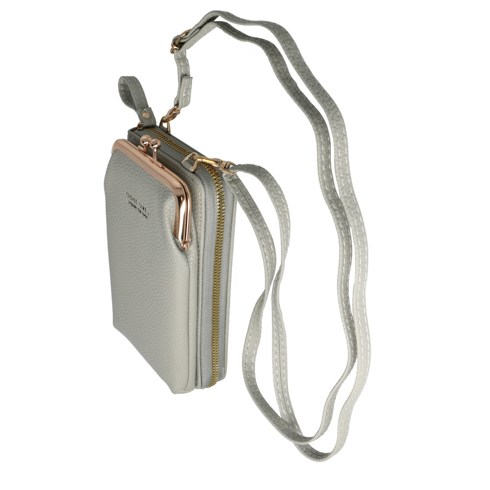 Praktyczna i elegancka torebka damska, która łączy w sobie funkcję portfela oraz etui na telefon. Model składa się z dwóch części: