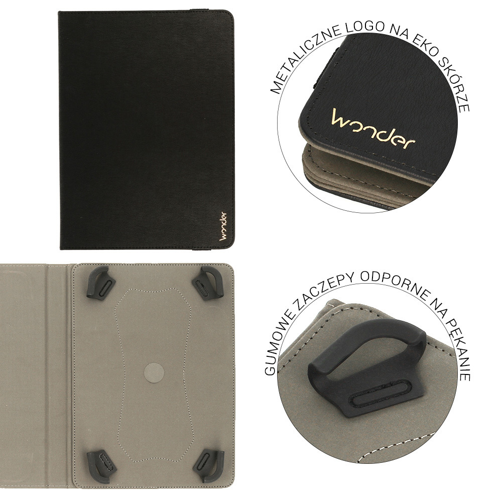Wonder Leather Tablet Case – to połączenie eleganckiego i nowoczesnego futerału z doskonałą ochroną naszego urządzenia. Wykonany jest z wysokiej jakości materiałów ze szczególną starannością o każdy detal. Etui wyposażone jest w elastyczne uchwyty, który dopasowują się do wymiarów danego tabletu. Produkt posiada miękkie wnętrze, chroniące ekran przed zarysowaniami. Dodatkowo przy odpowiednim złożeniu posłuży nam jako podstawka do komfortowego oglądanie zdjęć czy filmów. W etui mamy swobodny dostęp do wszystkich portów i przycisków. Nie ma potrzeby ściągać pokrowca, aby podłączyć ładowarkę czy nacisnąć któryś z klawiszy bocznych.
