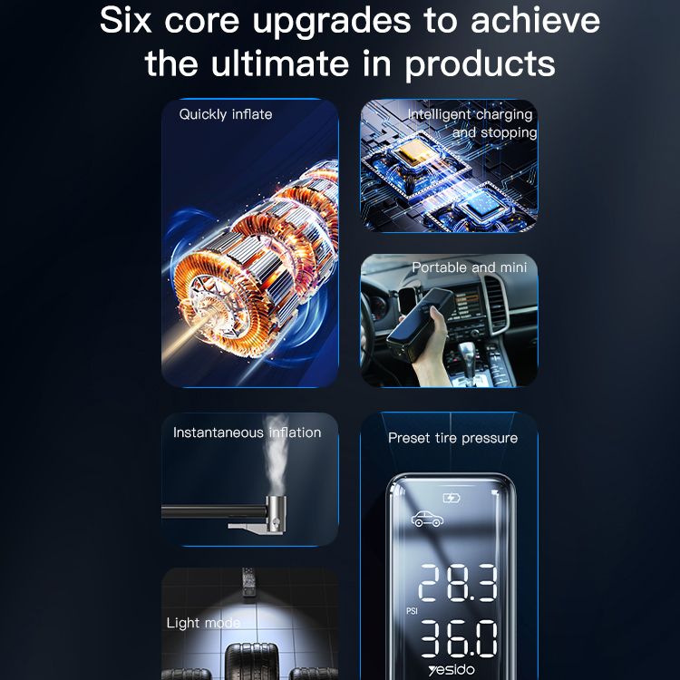 Zapewnij sobie spokój w każdej podróży dzięki pompce elektrycznej Yesido VC05. To lekkie, przenośne i wielofunkcyjne urządzenie umożliwia szybkie i bezpieczne pompowanie opon w samochodach, motocyklach, rowerach, a nawet piłkach sportowych.
